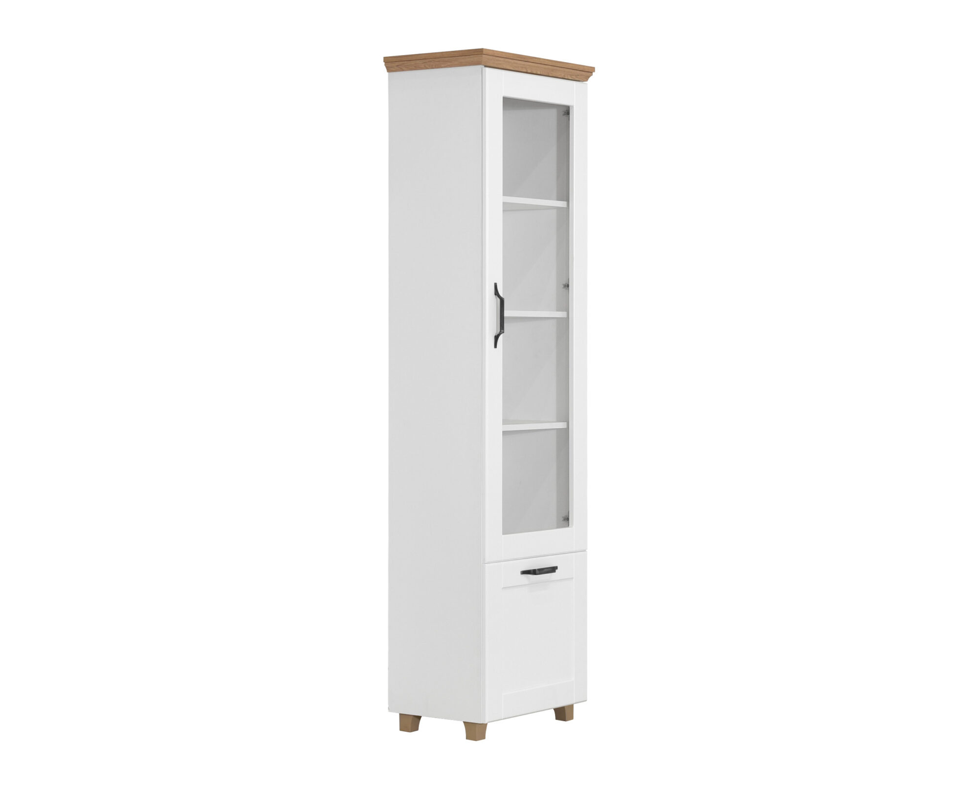 Staklena vitrina Contempo predstavlja praktičan, elegantan i višenamenski komad nameštaja koji se lako uklapa u svaku prostoriju. Njena funkcionalnost i moderan dizajn pružaju dovoljno prostora za odlaganje knjiga, ukrasa i drugih dekorativnih predmeta. Stakleni panel na vratima doprinosi estetici i otvara prostor. Osim toga, vitrina zauzima vrlo malo prostora, što doprinosi maksimalnoj iskorišćenosti ambijenta.